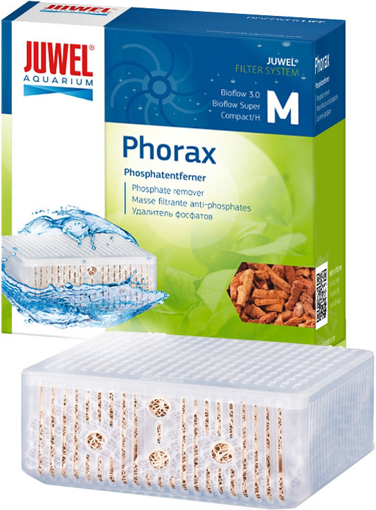 Fosfaten komen regelmatig terecht in het aquarium via het visvoer en worden op natuurlijke wijze nauwelijks afgebroken. Planten hebben echter maar heel weinig fosfaat nodig voor hun natuurlijke groei (zoet water: 0,05 mg/l, zout water 0,01 mg/l). Te veel fosfaat kan in omstandigheden een algenplaag veroorzaken. Phorax bestaat uit een aluminiummineraal, dat het afgegeven fosfaat door vorming van een niet-wateroplosbaar aluminiumfosfaat bindt en zo uit het water haalt. Daardoor is Juwel Phorax uiterst doeltreffend en bindt het tot 12 mg fosfaat per gram Phorax.
