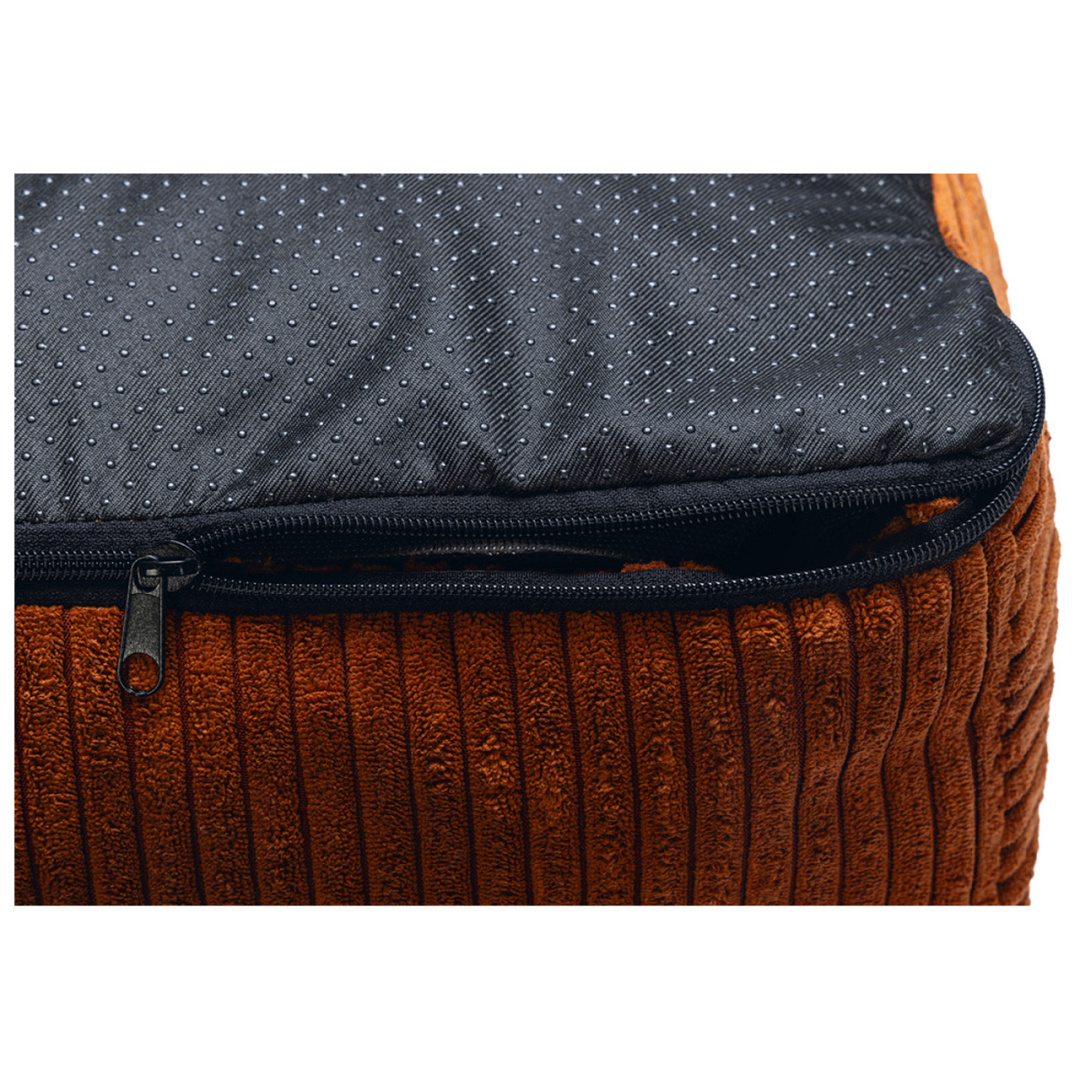 Dit hondenkussen is te herkennen aan de prachtige geribbelde stof. De stof is heerlijk zacht en stevig, wat ervoor zorgt dat het hondenkussen extra lekker ligt. Bovendien is het kussen goed gevuld met vlokkenvulling, zodat deze goed in zijn vorm blijft.
