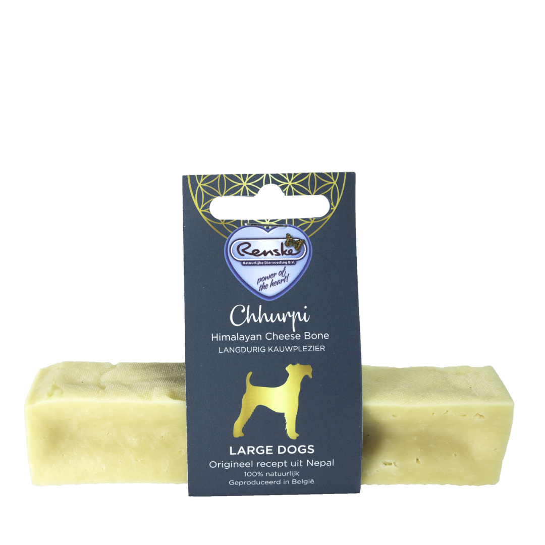 De Renske Chhurpi kauwkluif is een natuurlijke hondensnack gebaseerd op een eeuwenoud recept uit de Himalaya. Handgemaakt op basis van een traditionele methode, is deze kauwsnack een echte verwennerij! Een gezonde snack met een onweerstaanbare smaak!