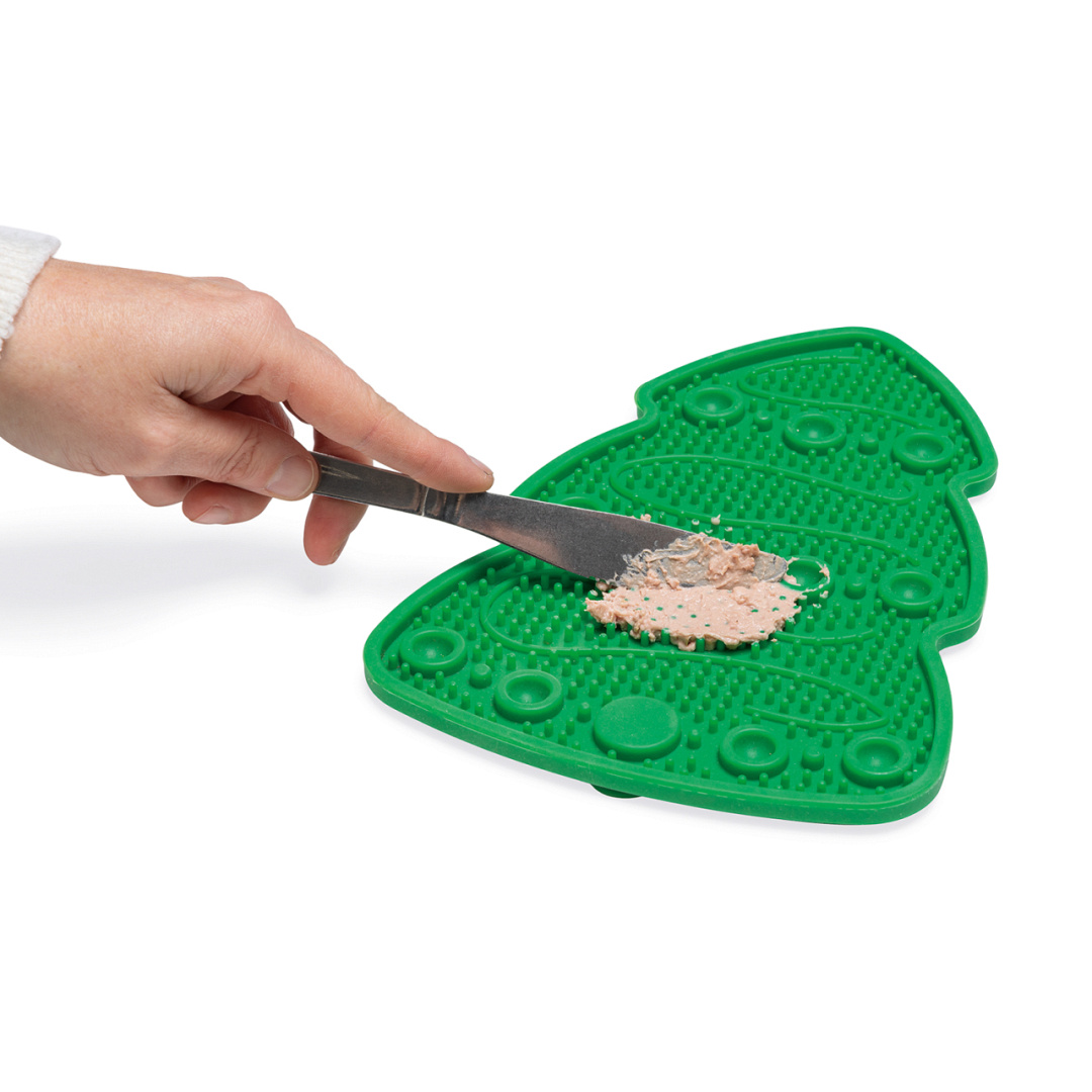 Likmat in de vorm van een kerstboom. Gaat schrokken tegen en vermindert stress bij jouw hond.