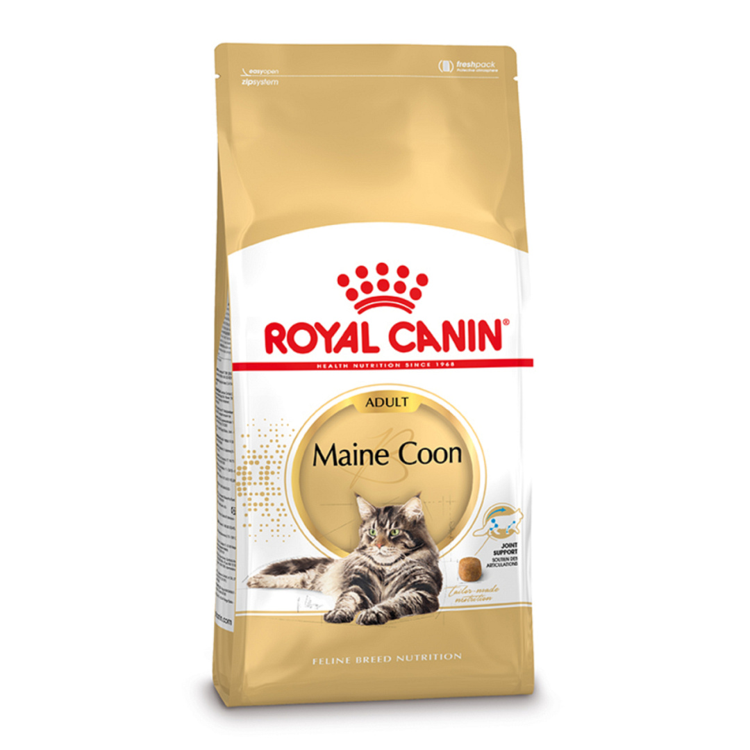 Royal Canin Maine Coon Adult is speciaal aangepaste voeding voor de grootste van de raskatten: de Maine Coon. Gezien de grootte, het gewicht en de kracht van deze kat moet bijzonder op de gezondheid van haar gewrichten gelet worden.