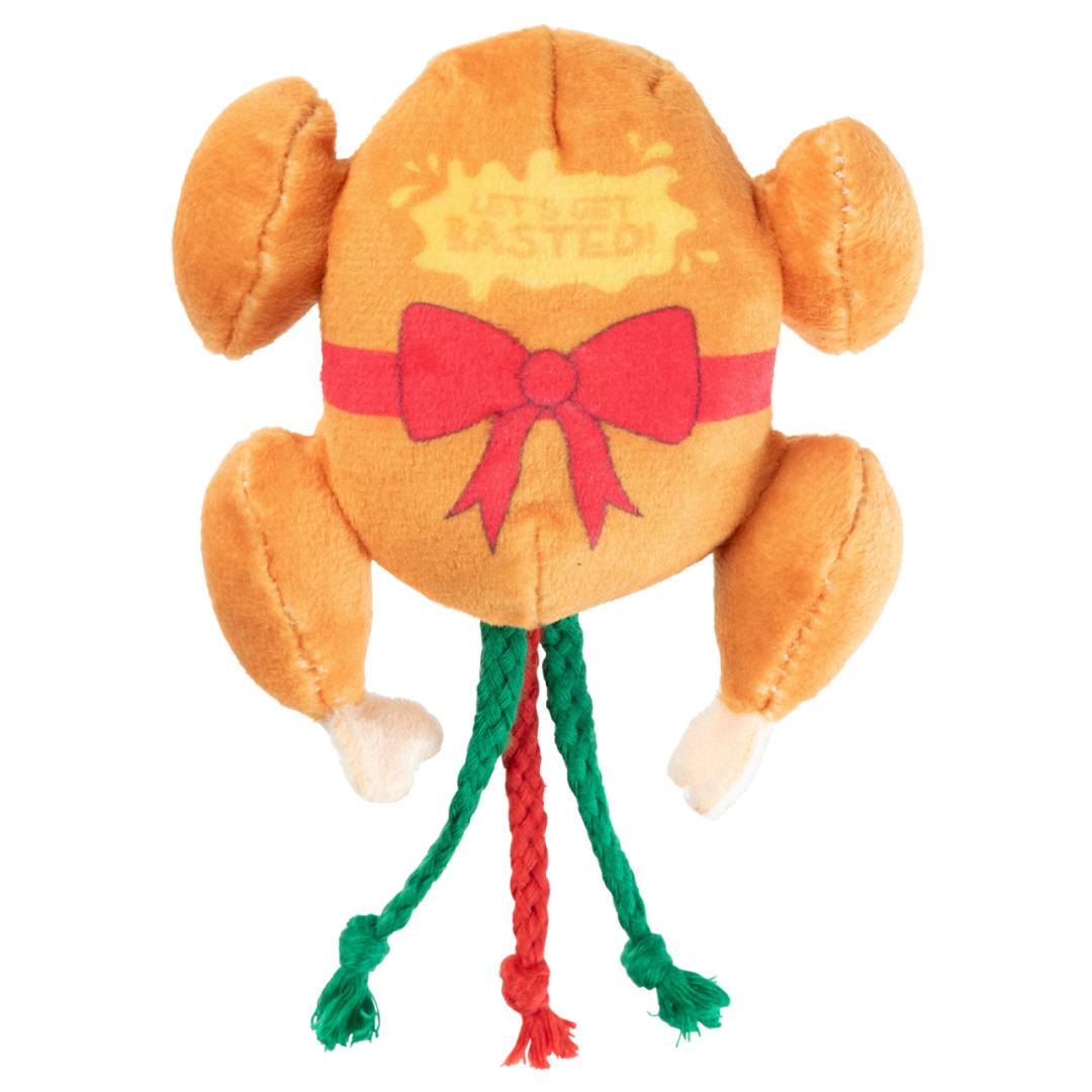 Serveer wat chaos tijdens de feestdagen met het FuzzYard kattenspeeltje Let's Get Basted Roast, het perfecte kerstmaal voor je kat! Deze kalkoen zonder vulling is versierd met poten van touw voor eindeloos speelplezier met slaan, springen en schoppen. Of je kat nu een speelse kok is of een ondeugende eter, dit speeltje is klaar voor de feestdagen.
