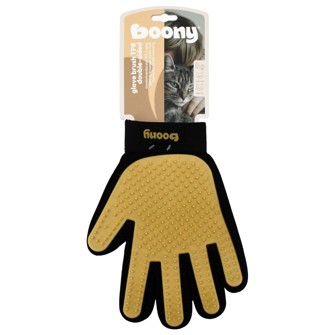 De rubber massage handschoenborstel is dé oplossing voor een prettige en doeltreffende vachtverzorging. Deze vijfvingerige handschoen is uitgerust met zachte, soepele siliconen noppen die het losse haar eenvoudig uit de vacht van je huisdier halen, terwijl jij je dier gewoon aait. Het haar blijft aan de handschoen plakken en is na gebruik eenvoudig te verwijderen.