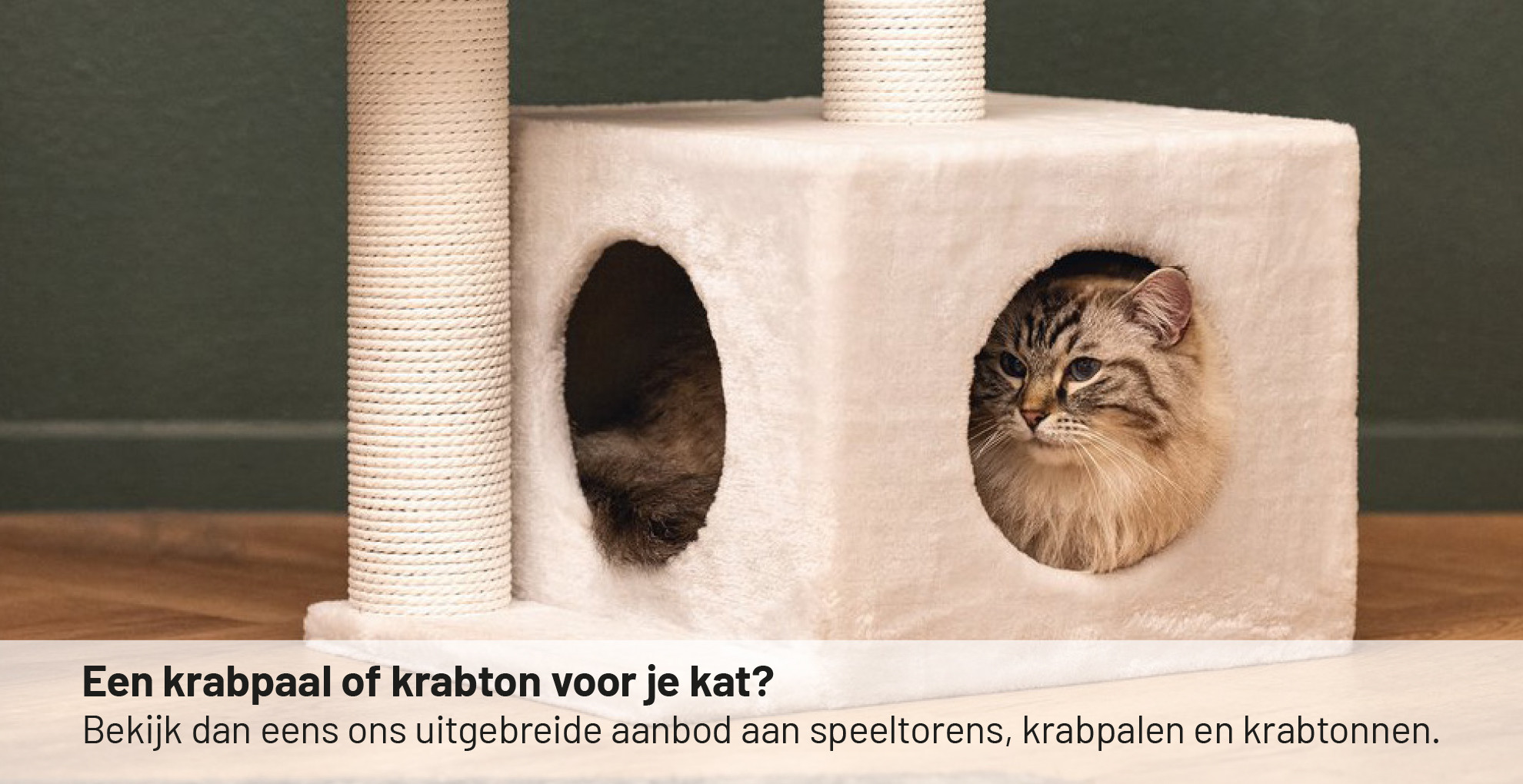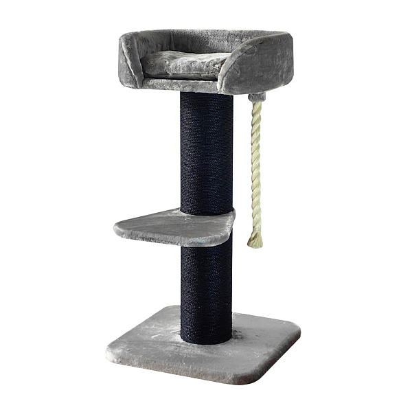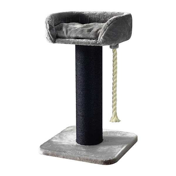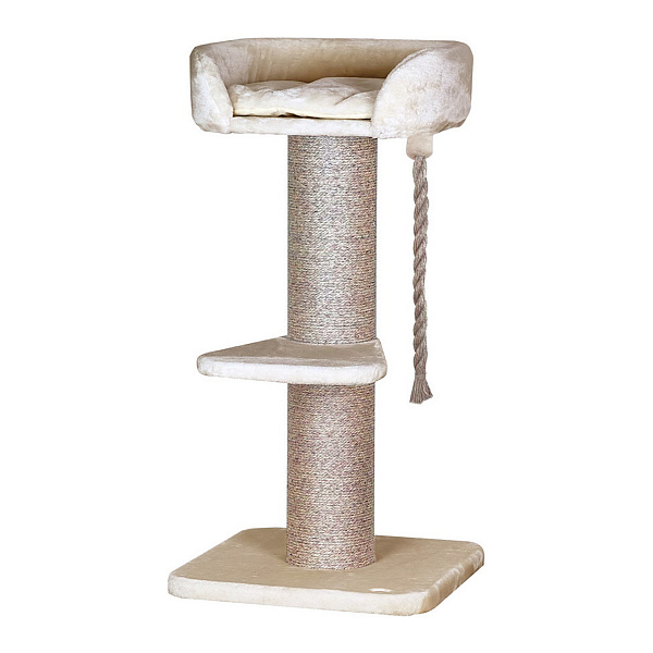 Stevige krabton met extra verzwaarde bodemplaat, 2 uitneembare kussens en een speeltouw. Afm. 49 x 49 x 98 cm.