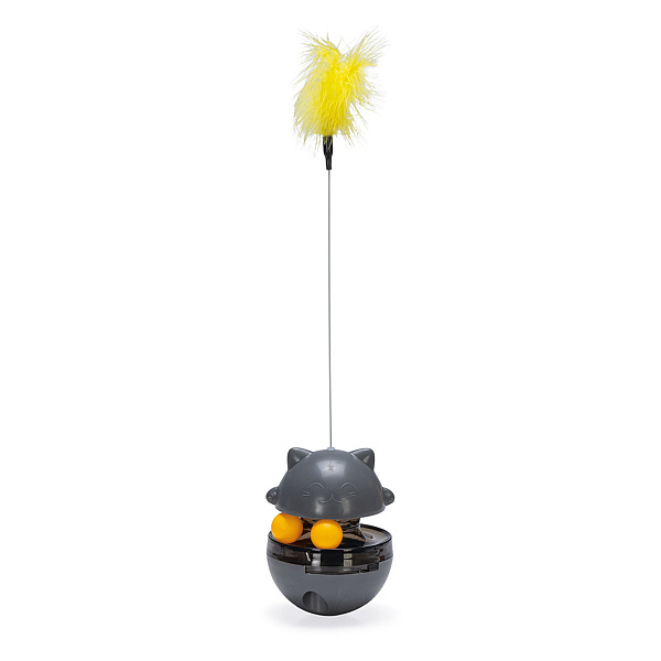 Uitdagend kattenspeeltje met tuimeleffect, speelballetje en veer. Ook te gebruiken als snackbal.