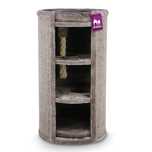 Stijlvol kattenspeeltje met diverse speelelementen en kattenkruid voor extra aantrekkingskracht. Afm. Ø 39,5 x 29 cm.