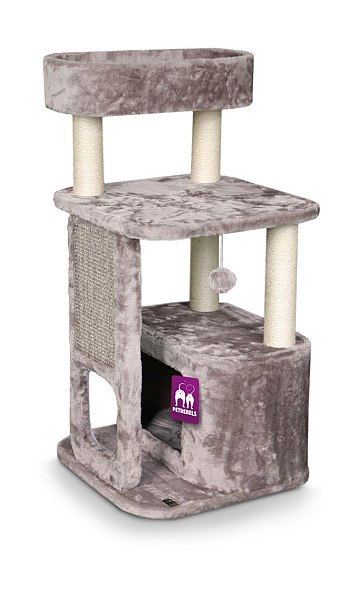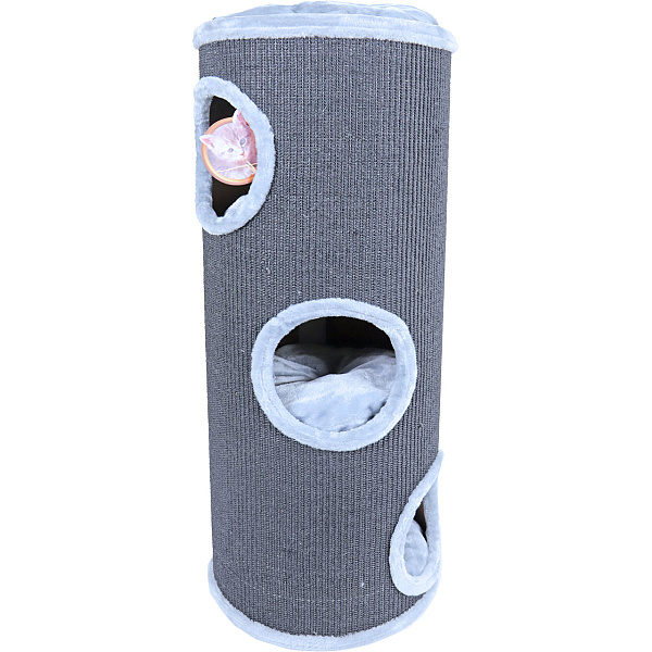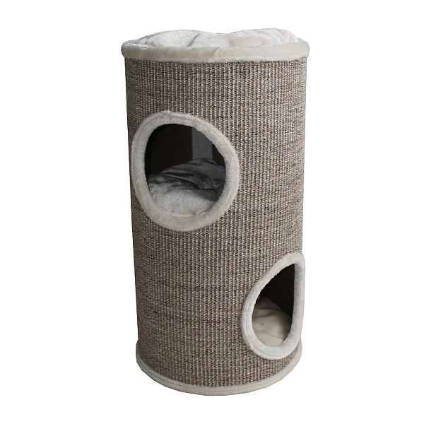 Robuuste sisal krabton met zachte pluchen kussens en drie in-/uitgangen. Afm. 42 x 42 x 100 cm.