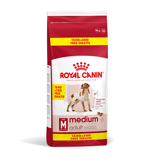 Glutenvrije, complete droge hondenvoeding, speciaal ontwikkeld voor volwassen honden van middelgrote rassen.